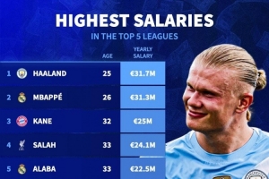 下一篇: 五大联赛年薪排名:哈兰德3170万欧居首,姆巴佩、凯恩二三位