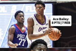 爵士5号秀埃斯-贝利全场打了24分46秒,13投3中(三分5中1)、罚球2中1,得到8分7篮板(3个前场板)1助攻1抢断1盖帽,正负值为-12。