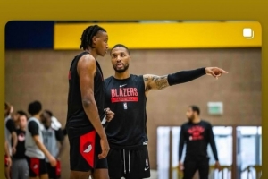 利拉德晒出了两人在开拓者训练时自己指导沃克的照片,并写到:“继续加油,Bari。”还附上了一个“cross your fingers”的表情,意为祝你好运。