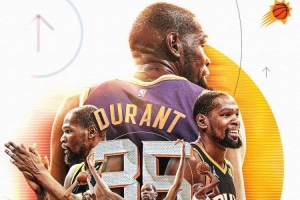太阳官方晒图致谢杜兰特写道:“谢谢你,KD。”