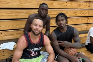 体育资讯7月7日讯 今日,热火球员戴维恩-米切尔在社交媒体上晒出了自己和斯蒂芬-库里、维克托-奥拉迪波一起训练的动态。