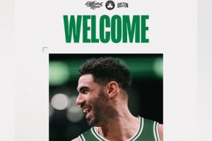 尼昂被老鹰送往了凯尔特人,凯尔特人官方晒图欢迎尼昂:“来自劳伦斯市(位于马萨诸塞州)的家乡孩子,欢迎回家。”