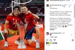 体育资讯7月8日讯 克罗地亚中场拉基蒂奇宣布队友,曾与他在塞维利亚共事的布努社媒发文致敬。