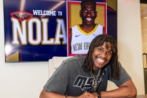 体育资讯7月8日讯 鹈鹕官方宣布正式和凯文-卢尼签约,晒出签约瞬间的照片并配文:“大个子正式签字了。”