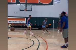 体育资讯7月8日讯 克莱今天更新Instagram,分享了一段自己和拉塞尔一起练球的视频。