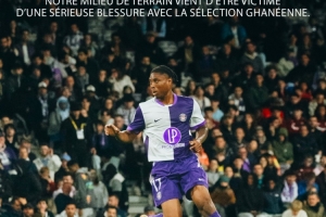 与日本友谊赛重伤离场,图卢兹祝福加纳国脚阿布:我们将与你同在