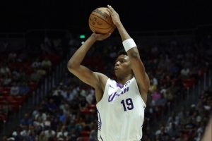 爵士5号秀埃斯-贝利,在球权不够多的前提下,利用自己的天赋频频争抢前场板机会,有金鸡独立,有底角的不沉球三分,有空接暴扣,有前板炸扣,表现相当抢眼。