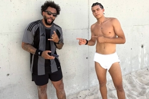 马塞洛的儿子恩佐更新社交媒体,晒出了与父亲一起打沙滩排球的相关动态,15岁的的恩佐身材精壮。