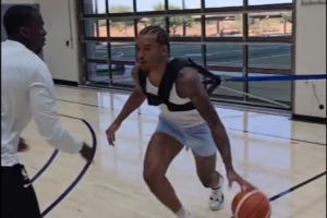 体育资讯6月25日讯 今天,马刺记者JeffGSpursKENS5转发了索汉的运球训练视频。