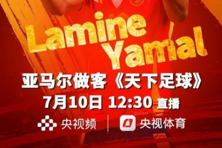 有网传图片显示,亚马尔将在7月10号12:30做客央视天下足球栏目。