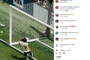 他也在赛后通过社媒晒出自己的这一高光时刻,并纪念道:“又一场决赛!蓝军们,我们周日再见。”