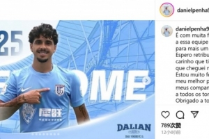 随后,丹尼尔-佩尼亚在个人社媒中写道:“非常高兴能加入大连英博俱乐部,迎接这一新的挑战。