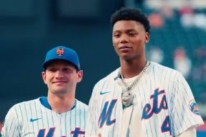 热门新秀贝利受邀为大都会队完成了比赛开球。