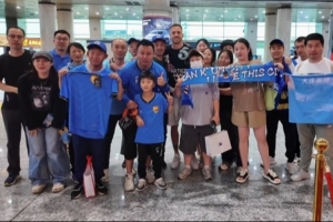 6月24日晚间,科特尼克乘飞机离开大连,众多大连球迷自发前往机场送机并合影留念。