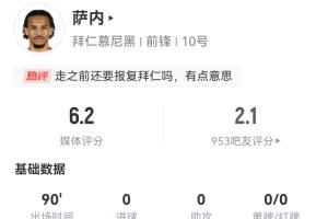 体育资讯06月25日讯 世俱杯小组赛C组末轮,拜仁0-1本菲卡丢掉了小组第一的位置。本场比赛也是萨内代表拜仁参加的最后一场比赛,但他以糟糕的表现结束了自己的拜仁生涯。