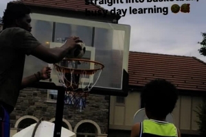 配文写道:“从足球训练迅速切换到了篮球,忙碌的学习日。”