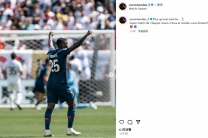 体育资讯7月10日讯 巴黎在世俱杯半决赛4-0血洗皇马,边后卫努诺-门德斯也在赛后通过社媒纪念。