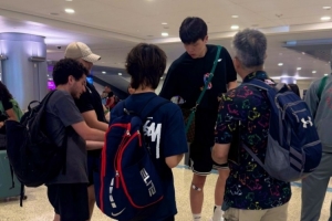 体育资讯7月11日讯 开拓者队记Casey Holdahl晒出了一张杨瀚森在机场给几位球迷签名瞬间的照片,并写到:“他已经出名了。”