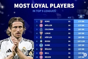 体育资讯7月11日讯 皇马在世俱杯半决赛0-4惨败巴黎,莫德里奇已经完成告别战。《转会市场》也列出了当前五大联赛效力同一队时间最长球员榜,魔笛位列第18位。