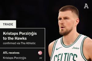 体育资讯06月25日讯 据ESPN名记Shams Charania报道,多位消息人士透露,凯尔特人、老鹰和篮网敲定以波尔津吉斯为主体的三方交易,详情如下:
