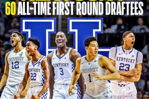 其中肯塔基大学有60个首轮签、高居第一,像现役的就包含亚历山大、浓眉、唐斯还有布克等人。而第二的是杜克大学,他们一共出品过59个首轮,第三的则是北卡的55个。