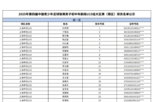 根据2025年第四届中青赛赛事安排,中青赛赛事办公室计划于7月11日至7月23日组织第四届中青赛男子初中年龄段U15组大区赛比赛,现将(南区)参赛球队人员名单予以公示,接受社会监督。公示期间,如有异议,请实名向中青赛赛事办公室反映,逾期不再接受反映。