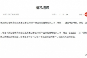 浙江省体育局通报招聘博士足球教练:曾某被取消招聘资格