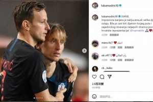 莫德里奇社媒晒出与拉基蒂奇在克罗地亚国家队的合照,配文:“令人印象深刻的职业生涯已经结束,但伟大的成就永远存在。能够成为你职业生涯旅程的一部分,并共同书写克罗地亚国家队历史上最美妙的篇章,我深感荣幸!”