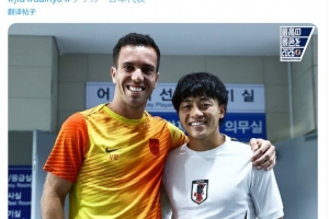 赛后,日本队官推晒出塞尔吉尼奥与相马勇纪的合照。本场比赛,塞尔吉尼奥第77分钟替补登场。