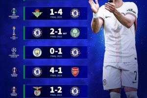 体育资讯7月12日讯 世俱杯决赛将在巴黎与切尔西之间展开,德转也盘点了切尔西近6次国际杯赛决赛的全胜表现(不包括欧洲超级杯):