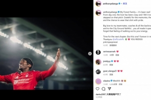 伊兰加晒出自己在森林时期的比赛照,并发文:“致诺丁汉森林大家庭——这一切如此真实!从踏入球队的第一天起,我感受到的狂热厚爱始终如影随形。每一次踏上球场,这份爱都真切地包围着我。感谢那些共同创造的回忆、宝贵的成长经历,以及身披红衫为荣耀而战的每一刻。”