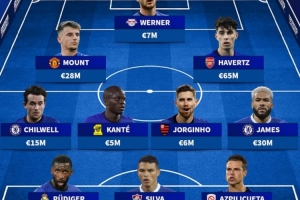 德转列切尔西2021欧冠决赛首发:当前总身价1.832亿欧元