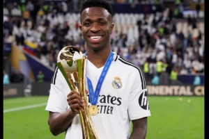 皇马官方晒出维尼修斯本赛季赢得洲际杯的照片,并表示:“生日快乐,@维尼修斯!”