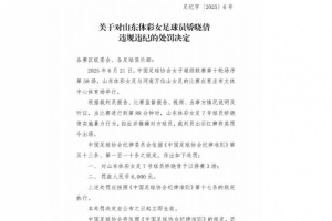足协官方消息,山东体彩女足矫晓倩被停赛3场,罚款6000元。