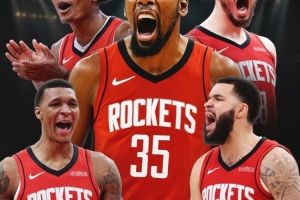 尽管杜兰特加盟前阵中没有超级球星,但火箭拥有以全明星中锋申京为首的年轻天赋阵容,以及可能是联盟最独特的天赋球员,或许已是除文班亚马外的最佳防守者阿门-汤普森。这支球队坐拥顶尖教练、顶尖防守体系,如今又增添了顶尖得分手。