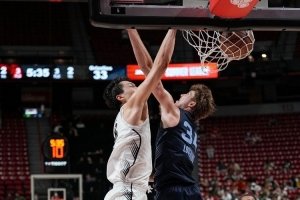 但和昨天首战大不一样:昨天杨瀚森开场喂队友扣篮,全场5助攻:挥洒自如,非常沃顿老萨约基奇。