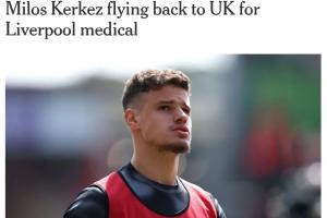 奥恩斯坦表示,科尔克兹今天飞往英国并接受体检,转会预计于周二官宣。据此前报道,利物浦已经与伯恩茅斯达成协议,将以大约4000万镑转会费签下这名球员。科尔克兹将签署为期五年的合同。