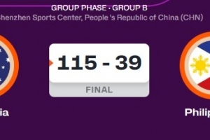 全场比赛澳大利亚命中率61%,六人得分上双;菲律宾命中率仅有27%,无人得分上双,最后一节仅得2分。