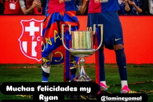 拉菲尼亚配文写道:“祝贺亚马尔,我真的很爱你,我的小兄弟!”