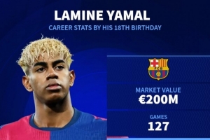 体育资讯7月13日讯 今日是巴萨天才亚马尔18岁生日,德转对比了亚马尔与梅西、C罗和内马尔四人18岁时的具体数据,其中亚马尔的成就对比三位前辈都是断层领先。