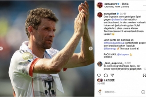 体育资讯6月25日讯 世俱杯小组赛,C组第3轮,拜仁0比1不敌本菲卡。赛后,穆勒更新社媒鼓励球队在淘汰赛中继续前进。