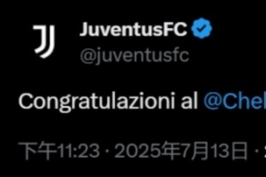 尤文官方写道:“祝贺切尔西勇夺世俱杯冠军。”