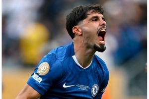 切尔西社媒晒出佩德罗-内托庆祝的照片,配文:“献给迪奥戈(若塔)。”