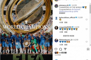 切尔西名宿、老队长特里社媒晒出夺冠海报,配文:“世界冠军,祝贺切尔西!”