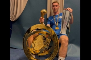 切尔西官推晒帕尔默赛后的照片并附上“寒冷”表情。帕尔默两手各握着世俱杯金球奖和世俱杯决赛最佳球员奖,身前则是沉甸甸的世俱杯奖杯。