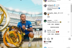 古斯托此役为切尔西踢满全场,赛后他在社交媒体上晒出与奖杯的合照,配文:“现在它是我们的了,世界冠军💙”