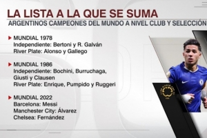 据ESPN统计,恩佐是第14位获得过世界杯+世俱杯冠军的阿根廷球员。