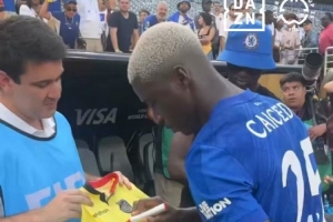 据DAZN报道,赛后众多球迷和记者向凯塞多索要签名,凯塞多很有耐心地不断签名。