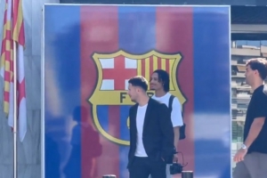 Jijantes FC在其官方社交媒体上这样写道:“巴德吉在签署合同后,离开诺坎普球场的办公室。德科、博扬、尤斯特和拉波尔塔都出现在签约现场。”