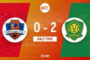 上半场比赛结束,梅州客家0-2北京国安。